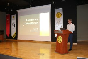 The second speaker of the event was Prof. Dr. Hywel Dix (Bournemouth University, UK). Dix discussed the genre of autofiction within the context of cultural memory. Participants were introduced to significant conceptual frameworks regarding the role of autobiographical writing in contemporary literature.