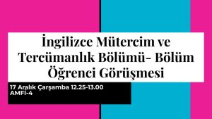 The Department of English Translation and Interpreting will hold a Department–Student Meeting on Wednesday, 17 December, between 12:25 and 13:00. During the meeting, current departmental matters, your suggestions, and your questions will be discussed.